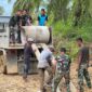Anggota Koramil 02 Karang Sertu Juandi melaksanakan pengawasan pembokaran tenda