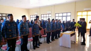 Sebanyak 38 kepala sekolah dan 43 pejabat fungsional resmi dilantik dalam prosesi pengambilan sumpah jabatan yang berlangsung di Aula Dinas Pendidikan dan Kebudayaan Kabupaten Bireuen, Jumat (27/2/2026). Pelantikan tersebut dipimpin langsung oleh Mukhlis TA Kabeya selaku Bupati Bireuen.