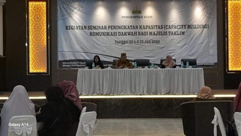 Dinas Syariat Islam Aceh melalui Bidang Penyuluhan Agama Islam dan Tenaga Da’i menyelenggarakan Seminar Peningkatan Kapasitas (Capacity Building) Komunikasi Dakwah bagi Majelis Taklim. Acara yang berlangsung selama dua hari, Selasa – Rabu ( 22-23 Juli 2025, ) di Hotel Fajar Bireuen.
