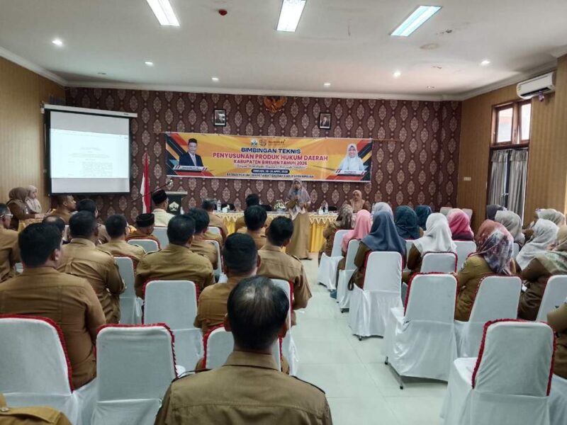 Pemerintah Kabupaten Bireuen melalui Bagian Hukum Sekretariat Daerah terus menunjukkan komitmennya dalam memperkuat fondasi hukum pemerintahan dengan menggelar Bimbingan Teknis (Bimtek) Penyusunan Produk Hukum Daerah Tahun 2026. Kegiatan tersebut berlangsung di Oproom Kantor Pusat Pemerintahan Kabupaten Bireuen, Selasa (28/4/2026).