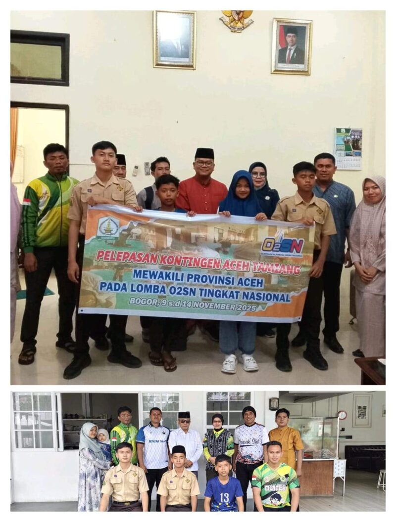Pj. Kepala Dinas Dinas pendidikan Aceh Tamiang Drs.Seprianto secara resmi melepas 2 pelajar yang berasal dari SMP N 1 Karang Baru dan SMP IT Syuhada Bundar untuk mengikuti Kejuaraan Olimpiade Olahraga Siswa Nasional (O2SN) Tingkat Nasional cabang Pecak Silat tahun 2025 untuk mewakili Provinsi Aceh.