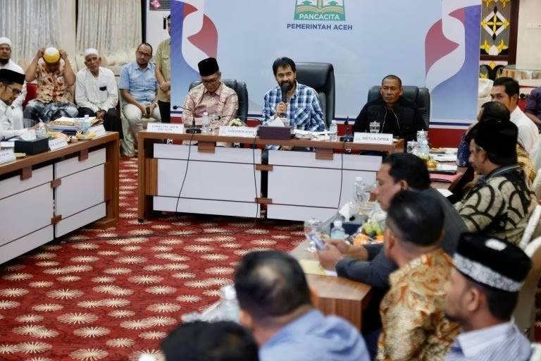 Gubernur Aceh Muzakir Manaf (Mualem) menggelar rapat khusus bersama anggota FORBES DPR dan DPD RI asal Aceh, membahas isu penting terkait status kepemilikan empat pulau di wilayah perbatasan Kabupaten Aceh Singkil (Aceh) dan Kabupaten Tapanuli Tengah (Sumatera Utara), Jumat malam (13/6/2025). Pertemuan itu juga melibatkan pimpinan dan anggota DPRA, para ketua fraksi DPRA, para ketua partai politik, Plt. Sekda Aceh, para kepala SKPA dan kepala biro, serta rektor perguruan tinggi dan ulama.
