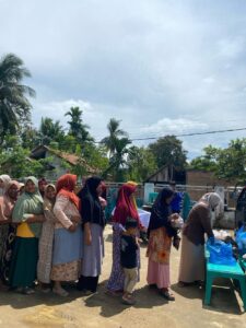 Selain mendistribusikan bubur bergizi, tim PKM Universitas Samudra juga memberikan edukasi gizi sederhana kepada masyarakat. Edukasi ini bertujuan agar warga tetap dapat mengenali kebutuhan nutrisi keluarga dan memilih bahan pangan yang aman dikonsumsi meskipun dalam situasi keterbatasan pascabencana.