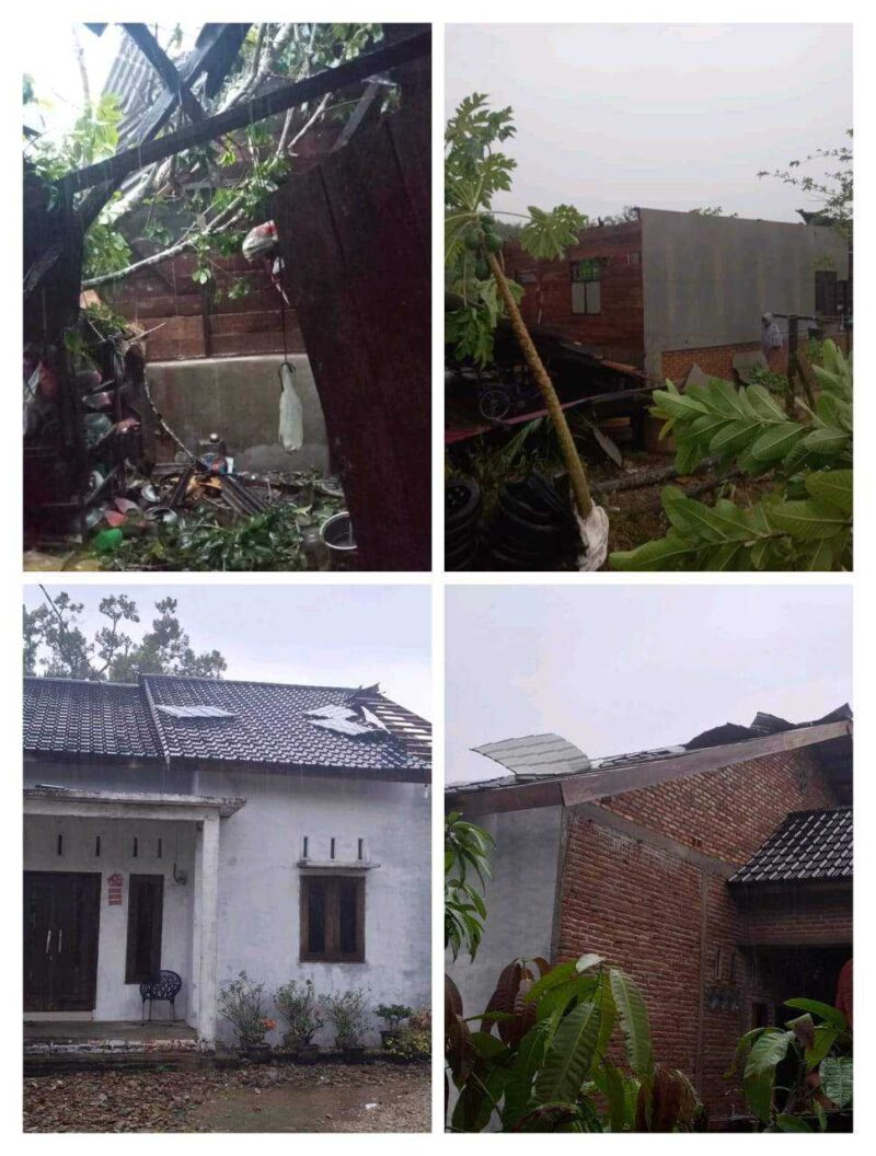 “Kejadian tersebut terjadi sekira jam 17.00 wib sampai dengan jam 18.00 wub dimana saat itu angin beserta hujan sangat deras disertai angin yang kencang yang mengakibatkan beberapa bangunan dan infrastruktur rusak “.