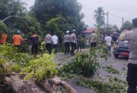 Foto : Tim Gabungan. Melakukan Evakuasi. Pohon yang Ambruk di badan jalan. Infolangsa.com. Pohon Asam Besar Ambruk dimakan Usia ( Lapuk ) roboh di…