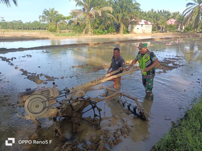 Dalam upaya mendukung ketahanan pangan nasional, Babinsa Desa Teluk Kepayang Sertu Firman, melaksanakan pendampingan pertanian dengan membantu petani membajak sawah di Desa Teluk Kepayang, Kecamatan Bendahara, Kabupaten Aceh Tamiang. Sabtu (19/04/2025)
