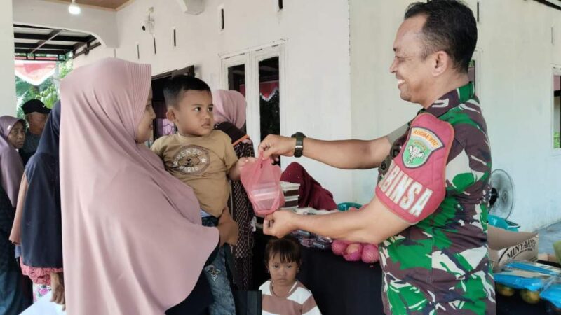 Dalam upaya menjaga kesehatan anak-anak usia dini di wilayah binaannya, Babinsa Koramil 06/Manyak Payed Sertu Riki Fernandes, mendampingi kegiatan Pos Pelayanan Terpadu (Posyandu) Balita yang dilaksanakan oleh petugas kesehatan di Desa Kaseh Sayang, Kecamatan Manyak Payed, Kabupaten Aceh Tamiang. Kamis (07/08/2025)