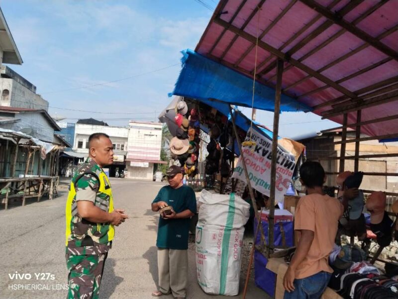 Babinsa Koramil 01/Kuala Simpang Serda Joko melaksanakan Komunikasi Sosial ( Komsos ) bersama dengan Pedagang kaki lima di Desa Kuala Simpang, Kecamatan Kota Kuala Simpang, kabupaten Aceh Tamiang. Senin (12/05/2025)