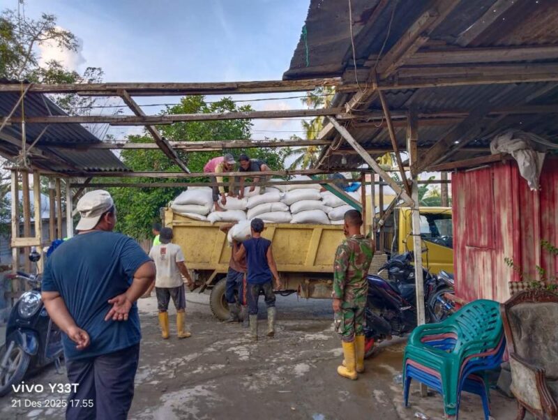 Sinergi antara Babinsa dan pemerintah kembali terlihat dalam proses mengawasi pendistribusian beras sebanyak 20 ton ke posko kecamatan di dusun tanjung rambut lorong 4 Desa Bukit Tempurung, Kecamatan.Kota Kuala Simpang, Kabupaten Aceh Tamiang. Senin (22/12/2025)