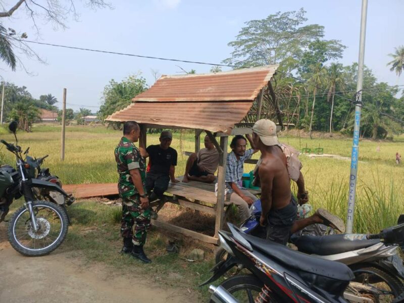 Babinsa Koramil 08/Ranatu , Kodim 0117/Aceh Tamiang Serka Subagio melaksanakan Komunikasi Sosial ( Komsos) dengan petani di gubuk persawahan Desa Jamur Jelatang, Kecamatan Rantau, Kabupaten Aceh Tamiang. Minggu (26/04/2026)