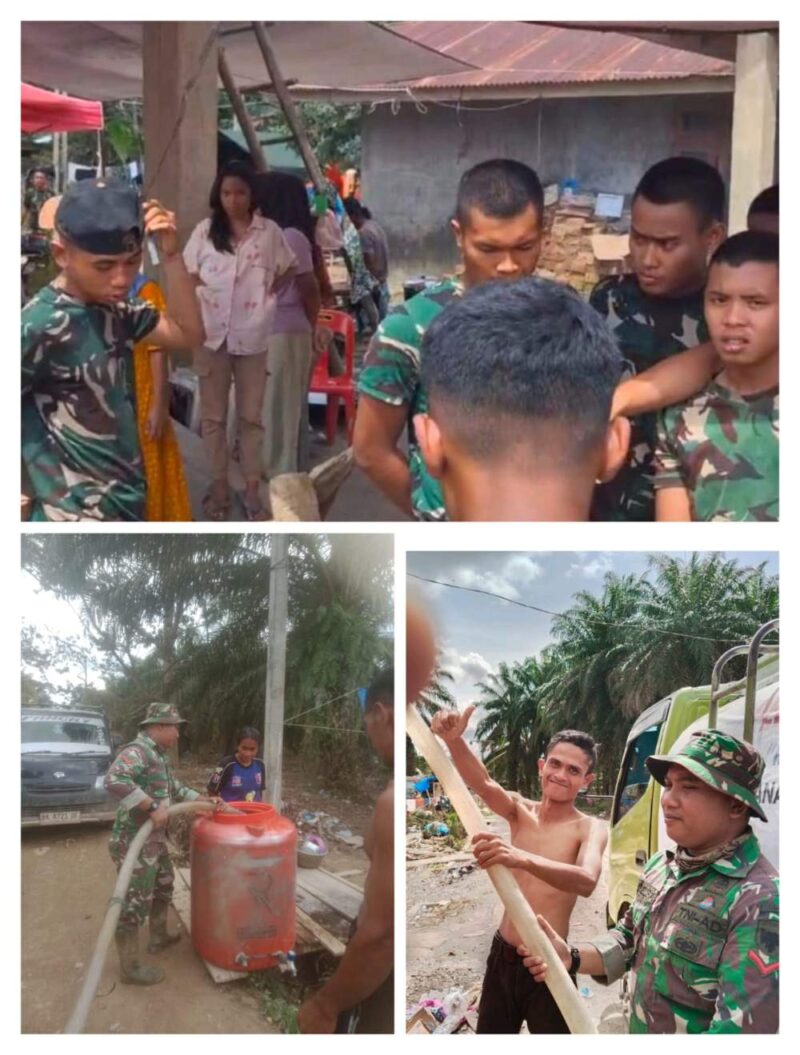 Koramil 02/Karang Baru melalui Babinsa (Bintara Pembina Desa) menunjukkan peran produktif dalam mendampingi penyaluran bantuan air bersih kepada masyarakat terdampak bencana di Desa Pematang Durian, Desa Juar, Desa Sulum dan Desa Suka Makmur, Kecamatan Sekerak, Kabupaten Aceh Tamiang, sebagai respons cepat terhadap kondisi air keruh dan kerusakan pipa paralon akibat banjir bandang.