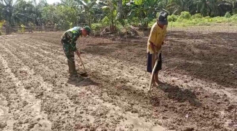 Sebagai upaya menggeliatkan semangat bercocok tanam, Babinsa Koramil 05/Tamiang Hulu jajaran Kodim 0117/Aceh Tamiang Serda Edi Witoko melakukan Komunikasi Sosial (Komsos) dengan metode menyambangi dan mendampingi langsung angota Kelompok Tani yang tengah menyiapkan lahan yang akan ditanami Kacang Tanah berlokasi di Desa Perupuk, Kecamatan Bandar Pusaka, Kabupaten Aceh Tamiang. Senin (21/04/2025)