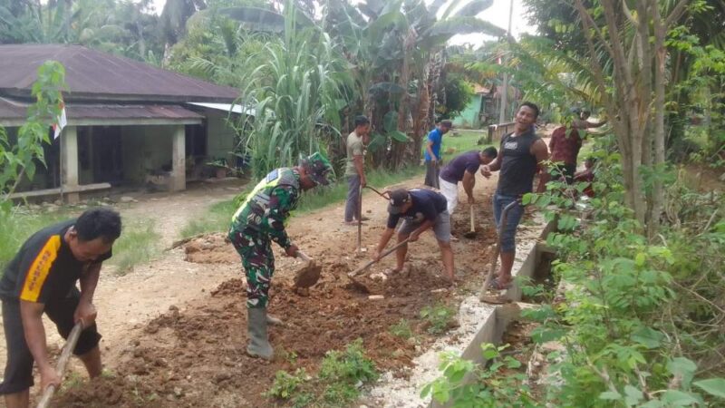 Babinsa Koramil 05/Tamiang Hulu, Kodim 0117/Aceh Tamiang Serka Jumi’in melaksanakan giat gotong royong bersama-sama masyarakat di wilayah binaannya dalam rangka TNI manunggal bersama rakyat di Desa Harum Sari, Kecamatan Tamiang Hulu, Kabupaten Aceh Tamiang. Sabtu (16/8/2025)