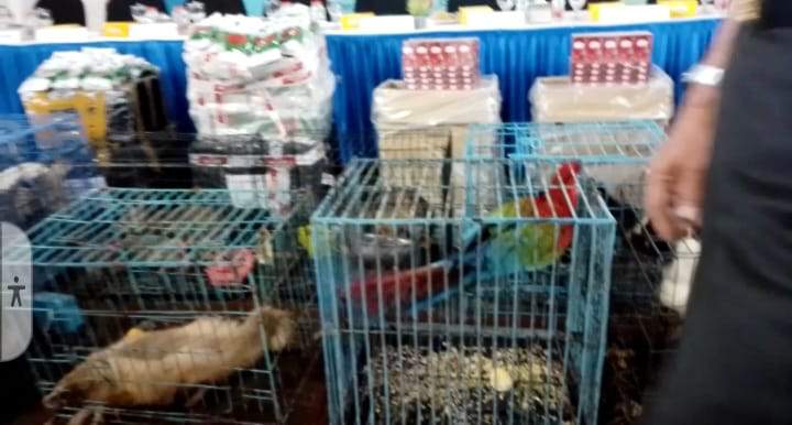 Foto : Beberapa hewan dan Rokok ilegal. Yang dimusnahkan oleh Beacukai Langsa.