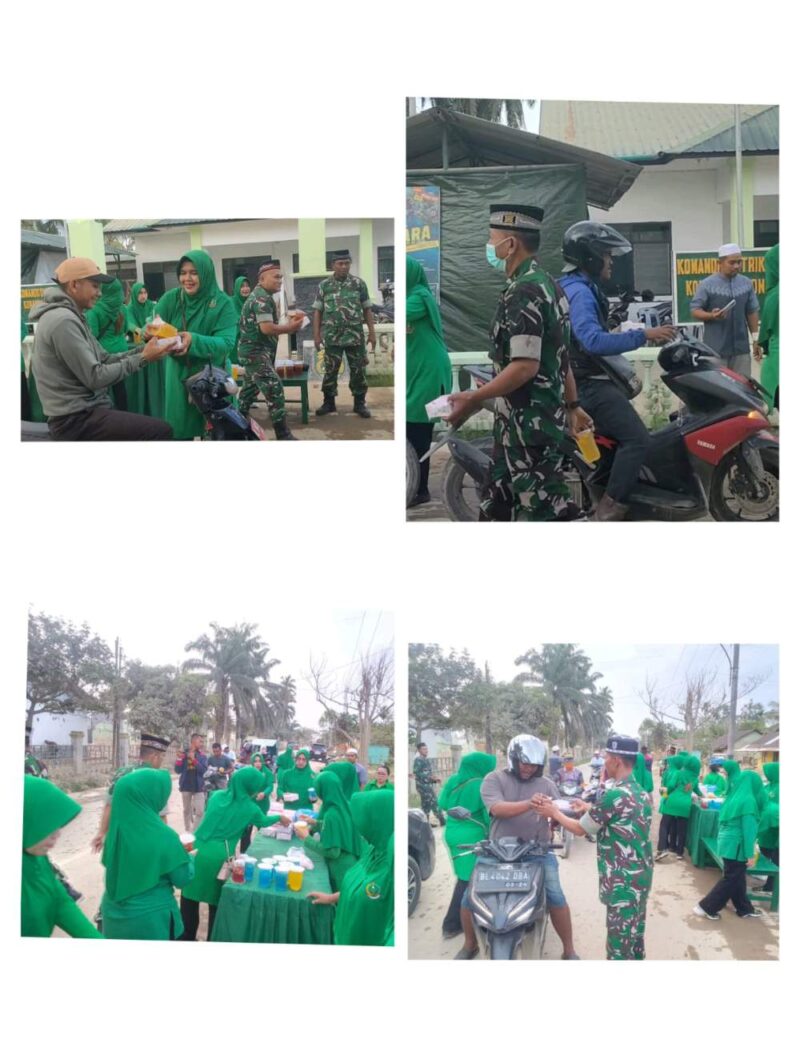 Semangat berbagi dan kepedulian sosial terasa hangat di bulan suci Ramadan. Keluarga besar Kodim 0117/Aceh Tamiang bersama Persit Kartika Chandra Kirana (KCK) Cabang XXIV Kodim 0117/Atam turun langsung ke jalan untuk berbagi takjil gratis kepada masyarakat yang melintas di depan Makoramil 02/Karang Baru Desa Bundar, Kecamatan Karang Baru, Kabupaten Aceh Tamiang. Jumat (13/03/2026) sore.