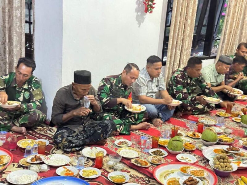 Di sebuah tempat yang disiapkan secara tampak prajurit TNI dan warga duduk bersila berdampingan. Tak ada kursi kehormatan, tak ada pembatas. Semua larut dalam suasana kekeluargaan, menikmati detik-detik menjelang azan Magrib dengan hati yang sama—penuh syukur dan harap.