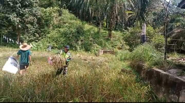 Kali ini Babinsa Koramil 05/Tamiang Hulu, Kodim 0117/Aceh Tamiang Sertu M. Wartoyo turun kesawah membantu petani melaksanakan kegiatan panen padi dilahan milik Bapak Rusdi di Desa Pantai Cempa, Kecamatan Bandar Pusaka, Kabupaten Aceh Tamiang. Selasa (11/03/2025)