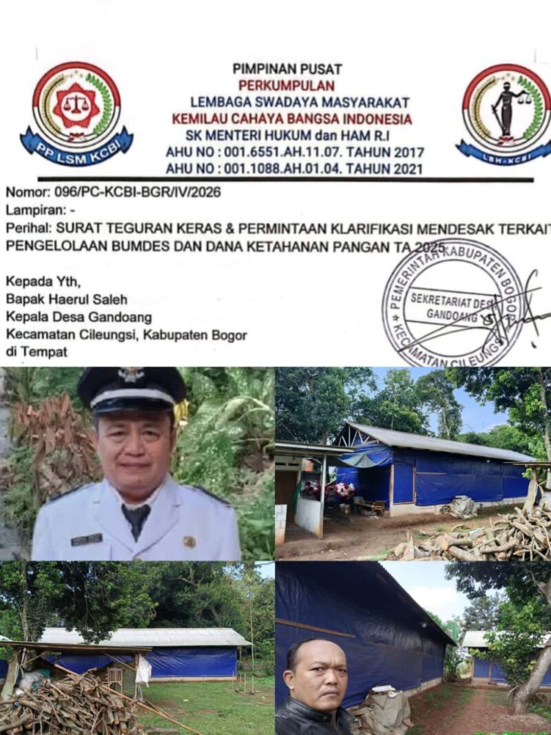 Lembaga Swadaya Masyarakat Kemilau Cahaya Bangsa Indonesia (LSM KCBI) Cabang Bogor mengungkap temuan baru terkait unit usaha peternakan ayam yang diduga dikelola BUMDes. Dalam investigasi awal, disebutkan bahwa sekitar 6.000 ekor ayam dengan berat rata-rata 1,5 kg per ekor telah dipanen dan diduga telah terjual dengan harga sekitar Rp. 75.000 per kilogram.