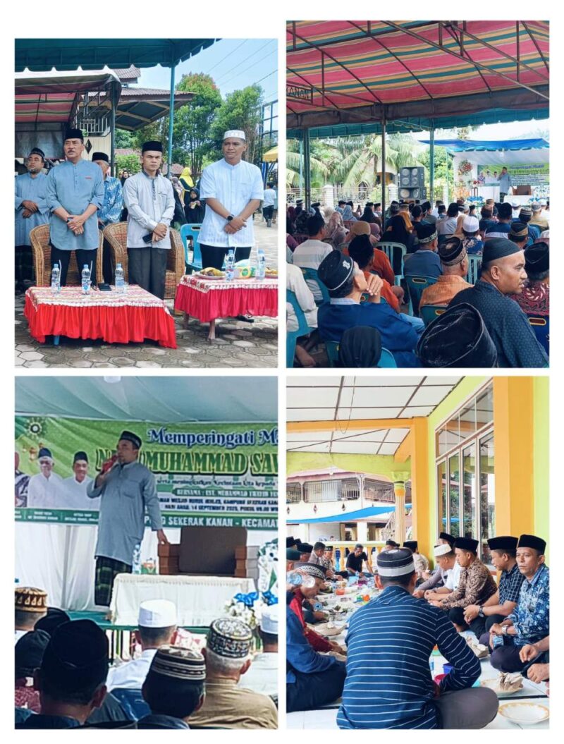Kegiatan Maulid Nabi Muhammad SWA yang di gelar di Desa Sekerak Kanan bertemakan “Mendalami Akhlak Serta Meningkatkan Kecintaan Kita Kepada Rasulullah Nabi Muhammad SAW”, dan menghadirkan penceramah tunggal Ustadz Muhammad Thayeb.