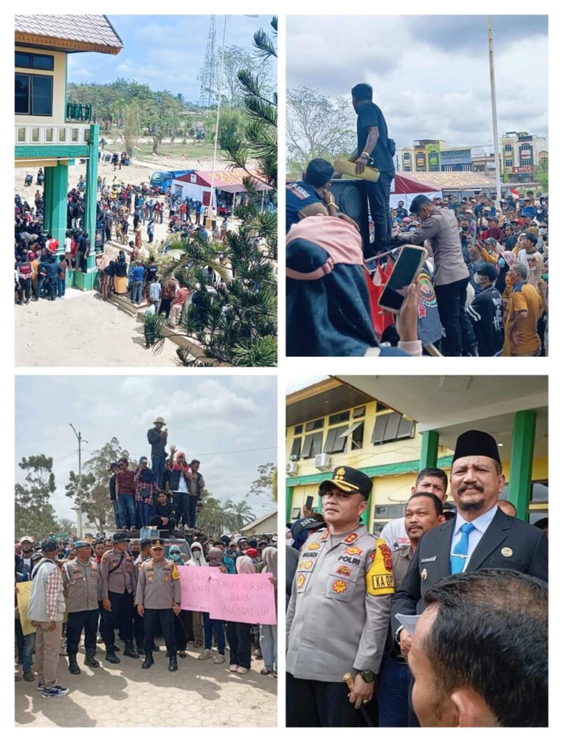 Bupati Aceh Tamiang menyapa pedemo di dampingi oleh Kapolres Aceh Tamiang AKBP Muliadi, Ketua DPRK Aceh Tamiang Fadlon SH.i