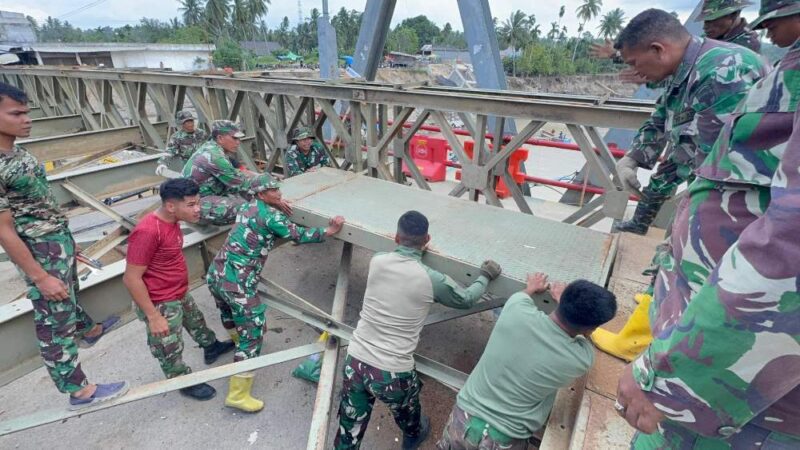 Capai 80 Persen, Prajurit TNI dan Kementerian PU Kebut Pembangunan Jembatan Bailey Kuta Blang