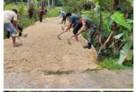 InfoLangsa.Com – Aceh Tamiang Babinsa Koramil 06/Manyak Payed, Kodim 0117/Aceh Tamiang Sertu Riki Fernandes gotong royong bersama warga meratakan timbunan tanah yang merupakan jalan…