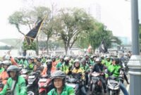 Teks Foto: Aksi Damai: Massa Gabungan Ojol sumut saat menggelar aksi damai menuntut potongan tarif aplikasi di Medan. Infolangsa.com – Medan Ratusan pengemudi ojek…