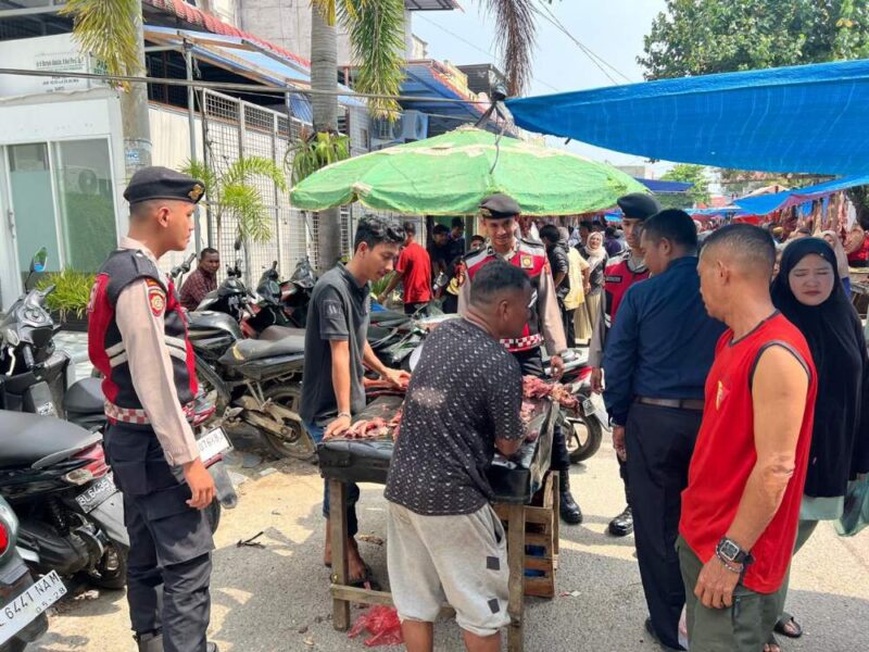 Menjelang Hari Raya Idul Adha 1446 H, Polres Lhokseumawe melalui personel Satsamapta meningkatkan patroli dan pengamanan di pasar tradisional, khususnya lokasi penjualan daging meugang, Kamis (5/6/2025).