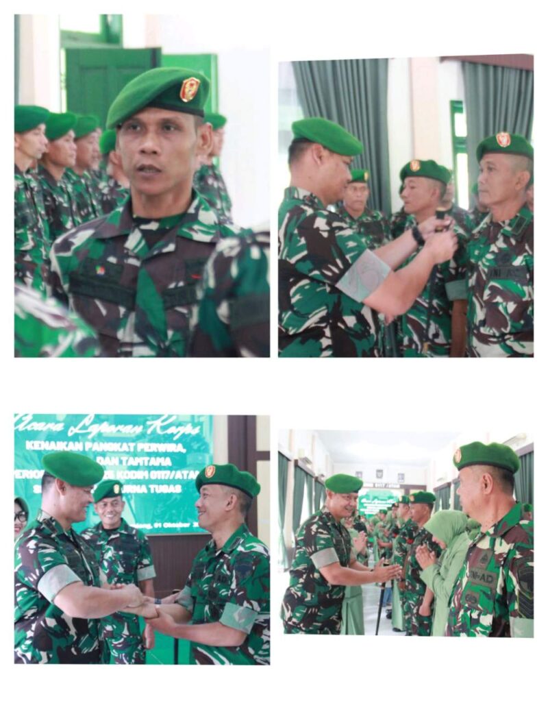 Komandan Kodim (Dandim) 0117//Aceh Tamiang Letkol Inf Andi Ariyanto, S.I.P., M.I.P., memimpin Upacara Korps Raport Kenaikan Pangkat periode 01 Oktober 2025 Anggota Kodim 0117/Aceh Tamiang serta Wisuda Purna tugas anggota bertempat di Aula Makodim 0117/Aceh Tamiang Jln. Lintas Sumatera Medan B. Aceh, Desa Sungai Liput, Kecamatan Kejuruan Muda, Kabupaten Aceh Tamiang. Rabu (01/10/2025)