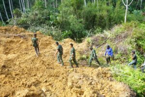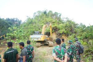 Komandan Satuan Tugas (Dansatgas) TMMD Reguler ke-128, Letkol Arm Raden Subhi Fitra Jaya. S. Sos, M.M., meninjau langsung lokasi pembukaan jalan yang menjadi sasaran fisik TMMD Reguler Ke- 128 Kodim 0117/Aceh Tamiang di Desa Suka Makmur menuju Desa Baling Karang, Kecamatan Sekerak, Kabupaten Aceh Tamiang, Jumat (24/04/26). Peninjauan ini bertujuan memastikan seluruh sasaran fisik berjalan sesuai rencana dan target waktu.