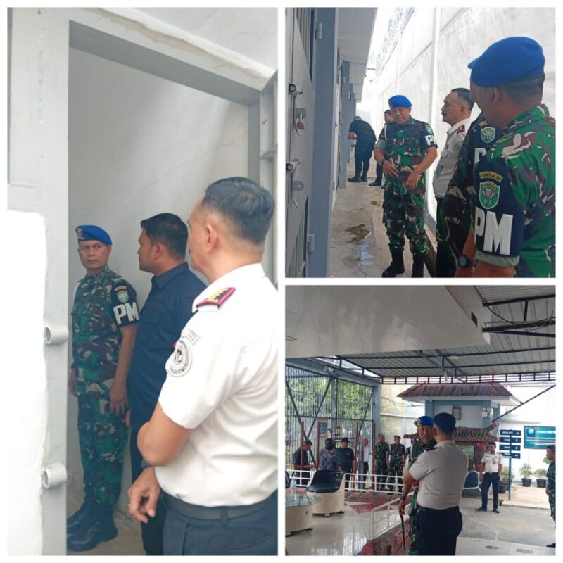 Komandan Detasemen Polisi Militer Iskandar Muda (Denpom IM) melaksanakan kunjungan ke Lapas Kelas IIA Banda Aceh dalam rangka pengecekan langsung kondisi sel karantina (strap sell), sebagai bagian dari upaya penguatan pengawasan dan sinergitas antarinstansi.