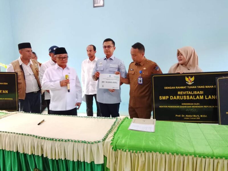 Menteri pendidikan dasar dan menengah Prof. Abdul Mu’ti,.M.Ed meresmikan sekolah secara simbolis yang dipusatkan di SD Negeri 4, Gampong Paya Bujok Tunong, Kecamatan Langsa Baro, Kota Langsa, Aceh, Senin, 5 Januari 2026.