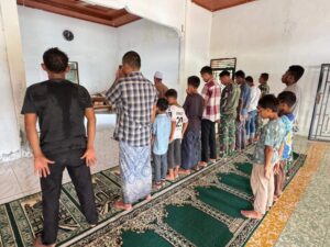 Kegiatan ibadah tersebut dilaksanakan dengan penuh kekhusyukan, menjadi momen jeda dari kerja fisik yang sejak pagi difokuskan pada pembangunan sarana dan prasarana desa. Tanpa sekat antara prajurit dan warga, mereka berdiri dalam satu saf, menyatukan niat, doa, dan harapan demi keberkahan setiap langkah pengabdian.