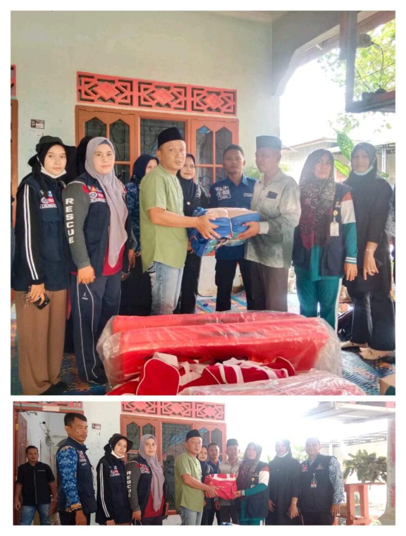 Penyerahan Bantuan diserahkan oleh Kabid Lijamsos Siti Rahmah SKM. M Kes kepada Datok penghulu Samsudin sebagai pihak pertama’ dan langsung Datok penghulu menyerahkan kan kepada Ayah korban Uu Fadli