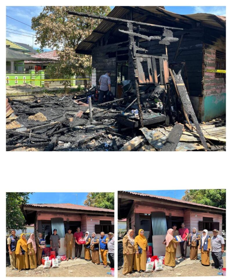 Atas nama Pemerintah Kabupaten Aceh Tamiang Dinas Sosial (Dinsos) Kabupaten Aceh Tamiang menyalurkan bantuan Masa panik kepada korban kebakaran rumah Desa Kebun Tanah Terban kecamatan karang pada Senin malam 21 September 2025.