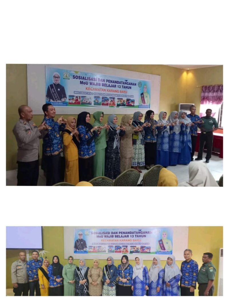 Untuk mengkampanyekan pentingnya Wajib Belajar 13 Tahun, Bunda PAUD Kecamatan Karang Baru lakukan Sosialisasi kepada seluruh Kampung (Desa) dalam wilayah Kecamatan Karang Baru Kabupaten Aceh Tamiang. Rabu 17 September 2025.