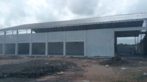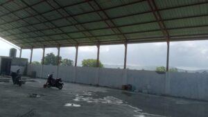 ​- Rangka atap dipasang sangat renggang dengan material ringan, padahal bentang bangunan mencapai ±30 meter.