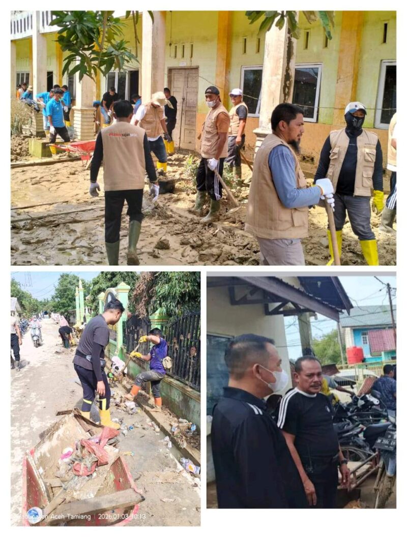 InfoLangsa.Com – Aceh Tamiang Sabtu, (3/1/26) Plt. Sekda Aceh Tamiang, Drs. Syuibun Anwar memimpin 4.265 ASN Pemerintah Aceh yang dikerahkan gotong royong membersihkan fasilitas pendidikan.