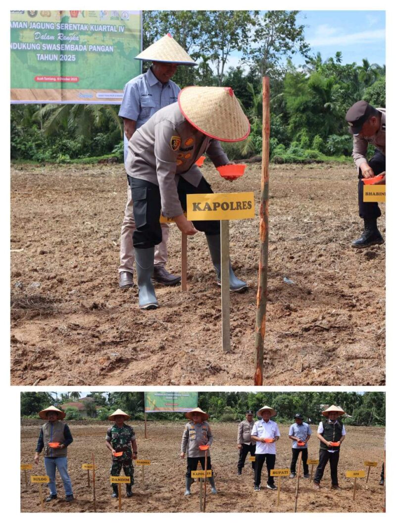 InfoLangsa.Com – Aceh Tamiang Polres Aceh Tamiang dukung penuh program Swasembada Pangan Nasional dengan turut serta melaksanakan kegiatan Penanaman Jagung Serentak Kwartal IV tahun 2025 di Desa Lubuk Damar Kecamatan Seruway, Rabu, 08 Oktober 2025.