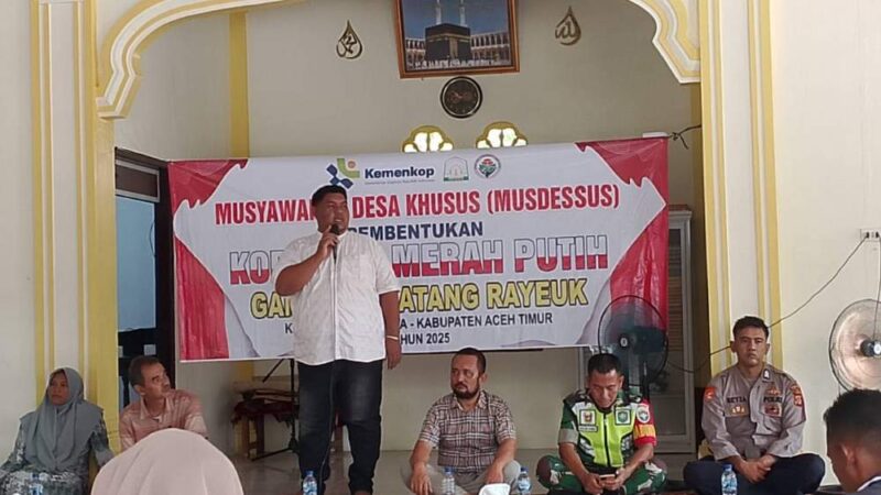 Pemerintah Desa Gampong Matang Rayeuk, Kecamatan Kecamatan Peudawa kabupaten Aceh timur , menggelar Musyawarah Desa Khusus (Musdesus) dalam rangka pembentukan Koperasi Desa “Merah Putih”. Kegiatan ini merupakan tindak lanjut dari Instruksi Presiden Republik Indonesia Nomor 9 Tahun 2025 tentang Penguatan Koperasi di Pedesaan.