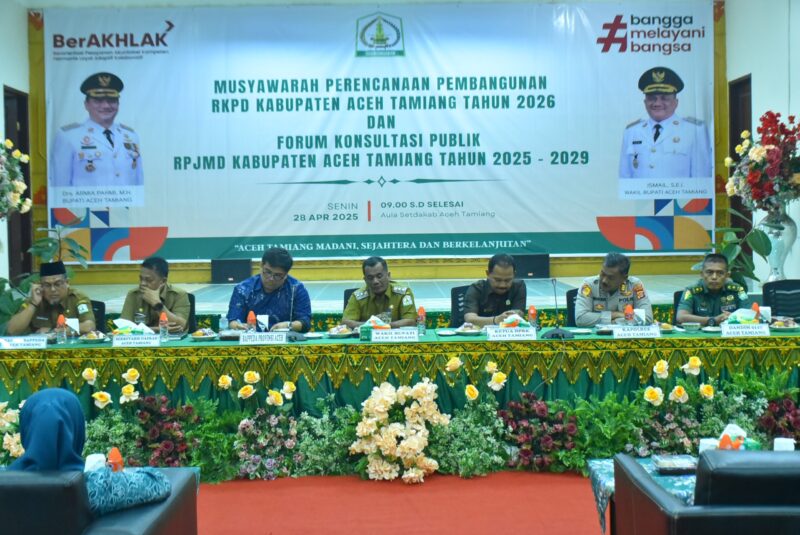 Pemerintah Kabupaten Aceh Tamiang menggelar Musyawarah Perencanaan Pembangunan (Musrenbang), Rencana Kerja Pemerintah Daerah (RKPD) Tahun 2026 serta Forum Konsultasi Publik Rancangan Awal RPJMD Tahun 2025-2029 di Aula Setdakab Aceh Tamiang, Senin (28/4/25).