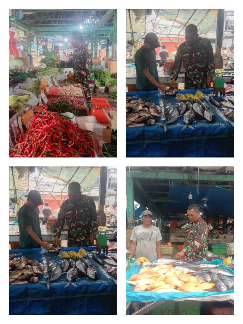 Dalam kegiatannya, Serma A.Syafri Babinsa menanyakan langsung kepada para pedagang Pasar tentang perkembangan harga sembako mulai dari, sayuran, minyak goreng, ikan, beras, dan Bahan pokok lainnnya.