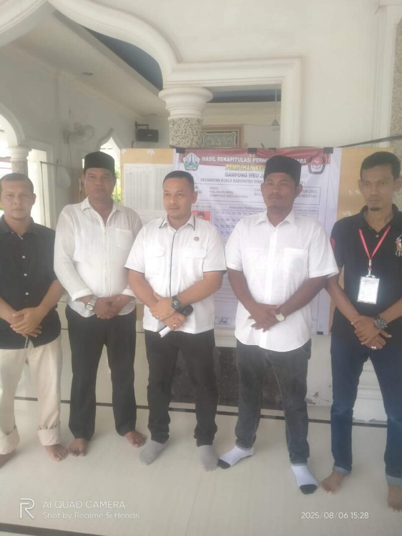Calon Nomor urut (01) Hendri Yannur, Amd. Kep memperoleh suara terbanyak pada Pemilihan Keuchik Langsung (Pilchiksung) pada Kamis (06/08/2025) yang berlangsung di meunasah Gampong Weu Jangka