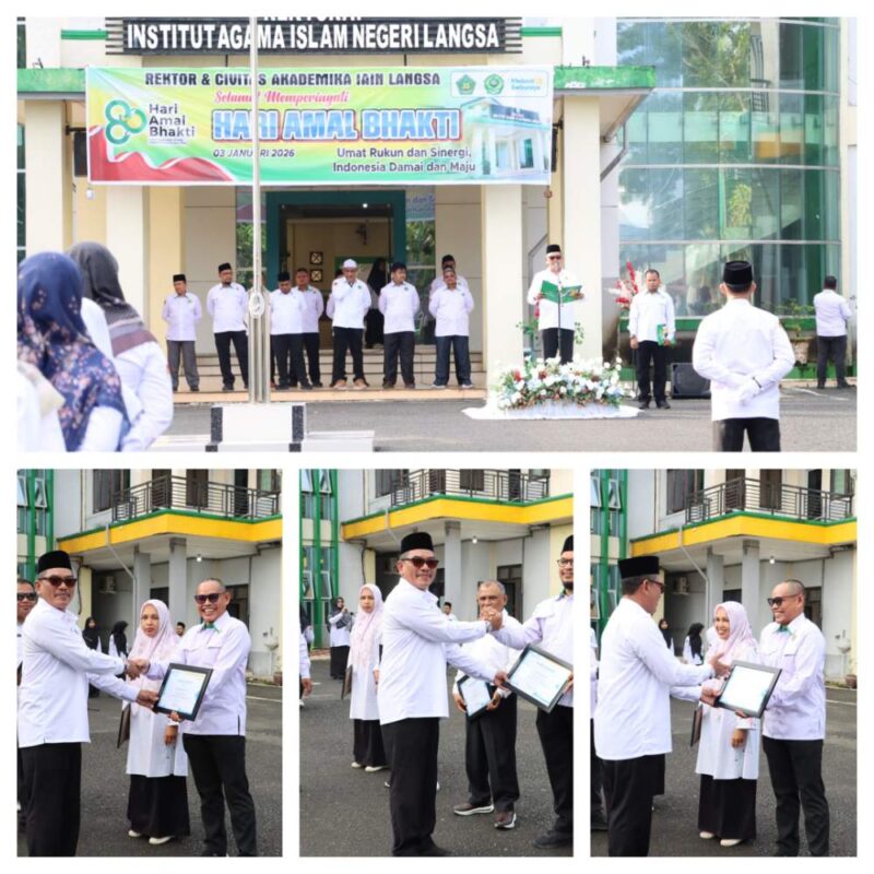 Institut Agama Islam Negeri (IAIN) Langsa menggelar Upacara Peringatan Hari Amal Bakti (HAB) Ke 80 Kementerian Agama Republik Indonesia yang berlangsung khidmat di Halaman Gedung Biro Rektorat kampus setempat, Sabtu (3/1/26).