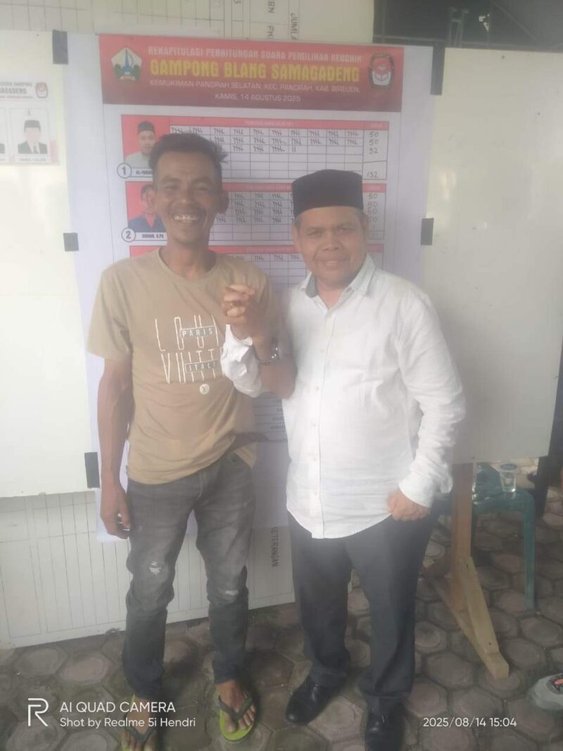 Calon Nomor urut (02) Ikhsan, S.PD memperoleh suara terbanyak pada Pemilihan Keuchik Langsung (Pilchiksung) pada Kamis (14/08/2025) yang berlangsung di meunasah Gampong Blang SamaGadeng.