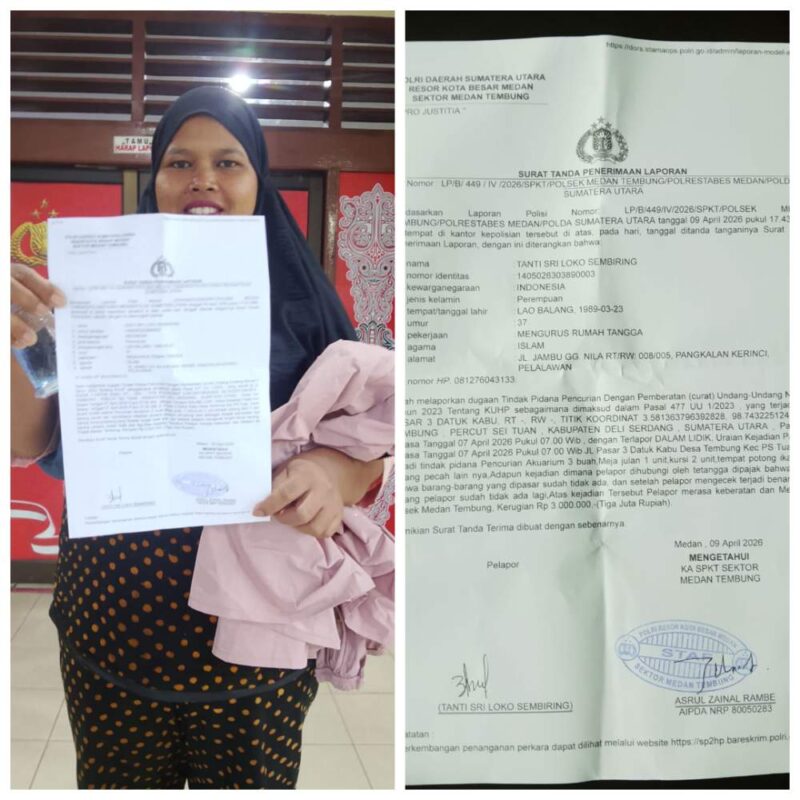 Usai membuat laporan Polisi Tantri menyampaikan kepada awak media tadi hari Kamis (9/4/2026) saya telah membuat laporan di SPKT Polsek Medan Tembung, setelah melalui konseling dengan penyidik laporan saya di terima dengan LP/B/449/2026/SPKT/Polsek Medan Tembung/Polrestabes Medan/Polda Sumatera Utara.