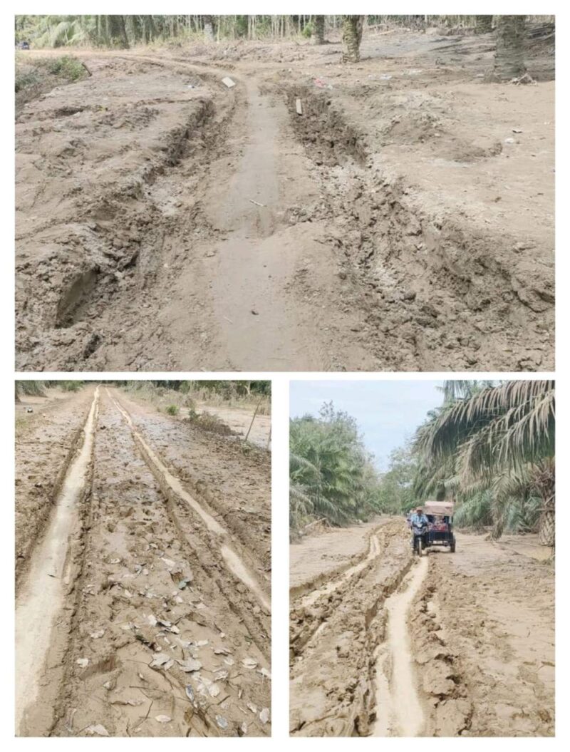 Foto : Jalan penghubung 3 Desa Di kecamatan karang baru terendam Lumpur Mohon perhatian pengerokan Alat berat