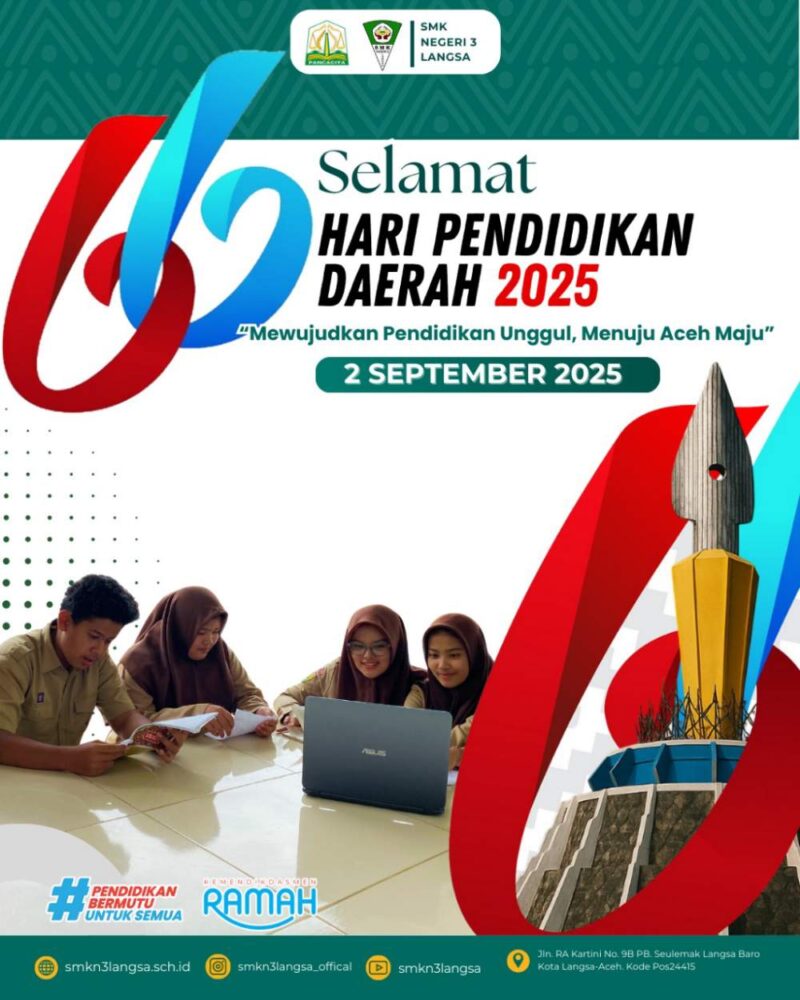 Sesuai dengan Tema HUT Hari Pendidikan Daerah Aceh Ke – 66 Tahun 2025 ” Mewujudkan Pendidikan Unggul, Menuju Aceh Maju” hal itu mengingatkan kita Rakyat Aceh khususnya pelaku pendidikan di Kota Langsa tidak hanya soal prestasi akademik, tetapi juga pembentukan karakter, kreativitas, dan daya inovasi agar generasi muda siap bersaing di tingkat nasional maupun global.