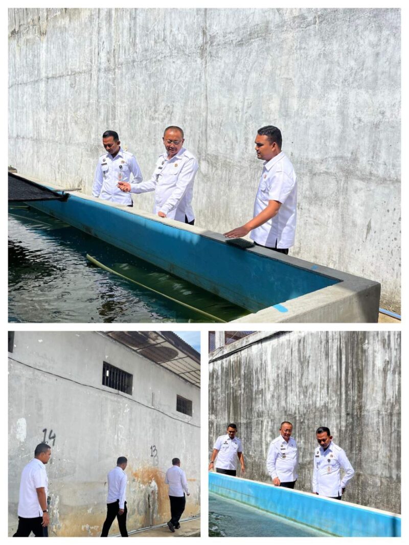 Kepala Lembaga Pemasyarakatan Kelas IIB Idi, Bahtiar Sitepu dengan didampingi Kasubsi Bimker, Reza Rezkiputra dan Staf melakukan Pengontrolan dan Pengecekan ternak Ikan Lele dan Udang Vaname di Area Ketahanan Pangan Brandgang Lapas Idi sekaligus melakukan Pengontrolan Keamanan di Area Brandgang Lapas Idi, Selasa (23/09).