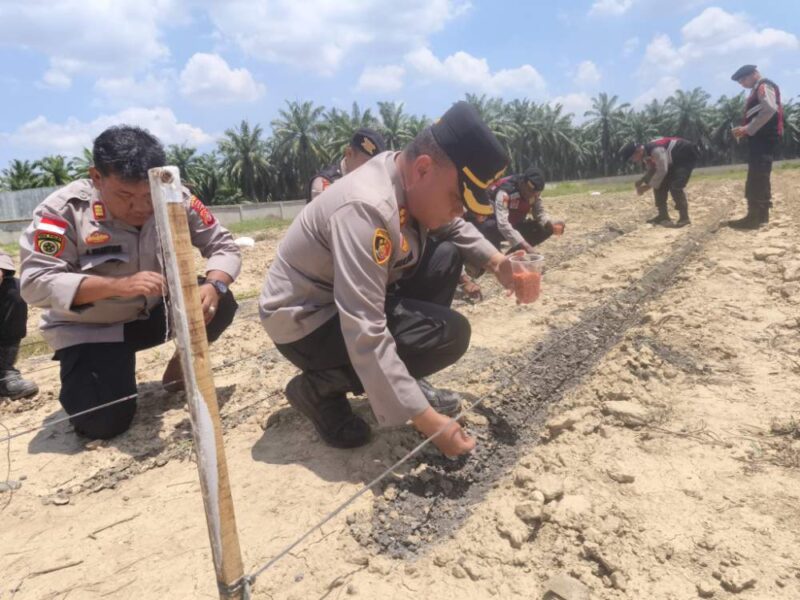 Pasca banjir yang melanda Kabupaten Aceh Tamiang, lahan kosong di belakang Mapolres Aceh Tamiang kini berubah menjadi sumber harapan baru. Kapolres Aceh Tamiang, AKBP Muliadi, S.H., M.H., bersama Pejabat Utama dan personel Polres Aceh Tamiang turun langsung mengolah lahan tersebut dengan menanam jagung. Rabu 22 April 2026.